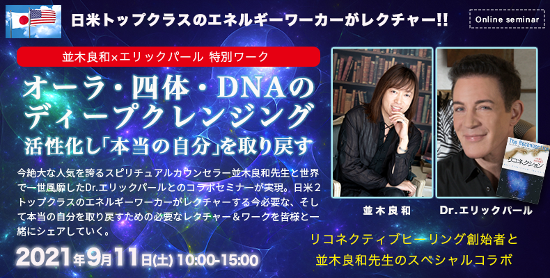 国際的に認知され、科学にも支えられた、”リコネクティブ・ヒーリング体験“は、しばしば、人々に瞬時の癒しをもたらし、一生続くものとして知られています。他の人々にも教えたいと言う思いに駆られて、エリック博士の取り組みは、彼と彼の人生の伴侶であるジリアンを世界100か国へといざない、何百万人もの人々の人生に劇的な影響を与えてきました。エリックとジリアンの描く未来像は、いつの日か、誰もが生まれつき持っているこの能力にアクセスすることを学び、自分自身と他者を癒すために使うようになることです。
