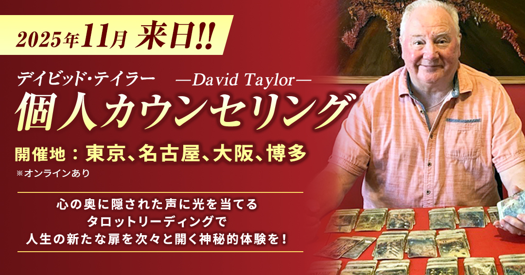 このたび、海外で高い評価を受け続けている実力派タロットリーダー・デイビッドが来日。日本で直接個人セッションを受けられる貴重な機会です。彼のリーディングは「まるで心を見透かされているよう」と多くのクライアントから驚きと信頼を集めています。