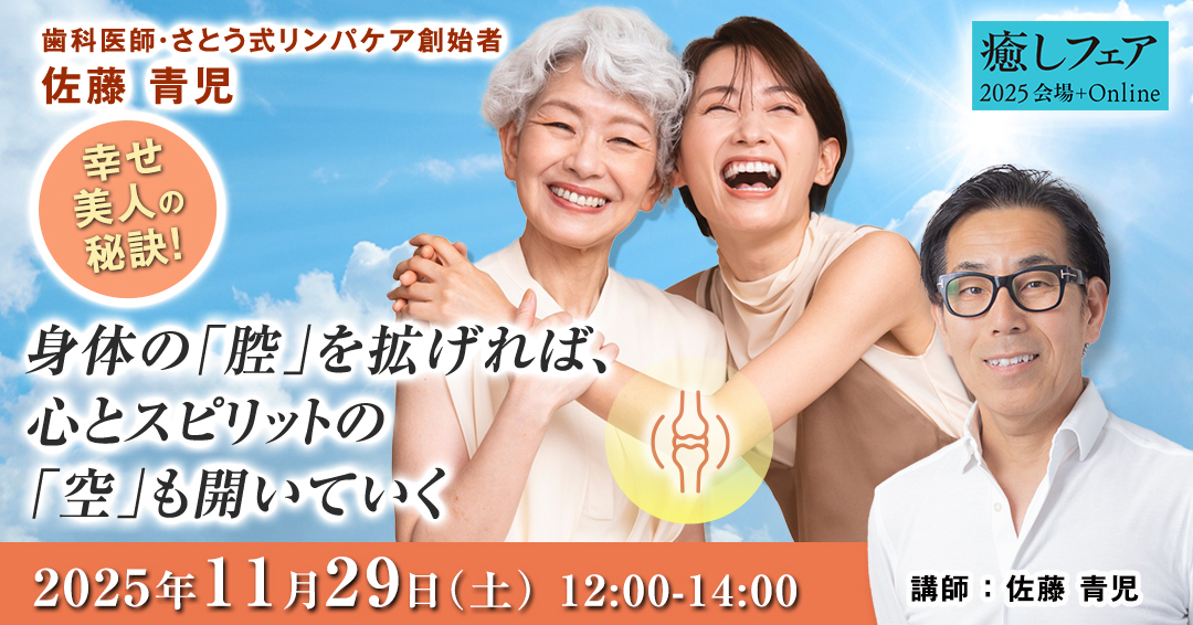 歯科医である佐藤青児先生がなぜ「さとう式リンパケア」をやり始めたかというと、顎関節症のお母さんの子どもは、だいたい顎関節症で、母さんがゆるみはじめると、子どもの顎関節症は触れなくても治ってしまうことを発見したからだそうです。
