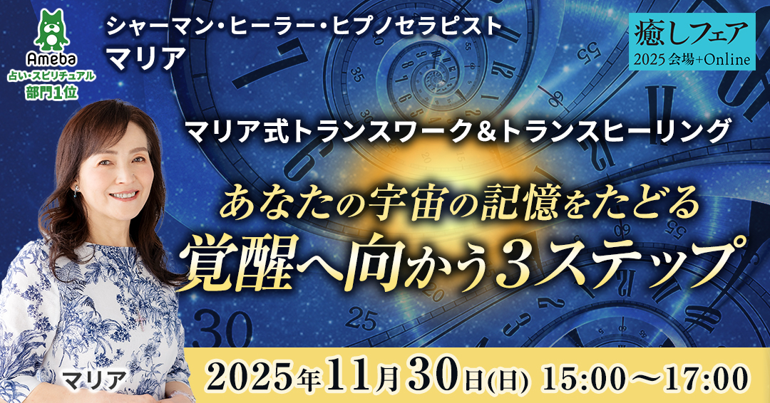 2023年の癒しフェア大阪では、「胎児期退行」。翌年2024年の癒しフェア大阪では「インナーチャイルド」で無意識の領域へ、癒しフェア東京では「潜在意識」とその先の「無意識・集合無意識・宇宙意識」へのマカバを使ったトランスワーク&トランスヒーリングを開催してきました。いずれも会場参加のみで、販売開始後すぐに完売という人気のトランスワーク。2025年の癒しフェア東京では、会場だけなくオンラインでも開催決定となりました! 会場参加は、限定60名までです。