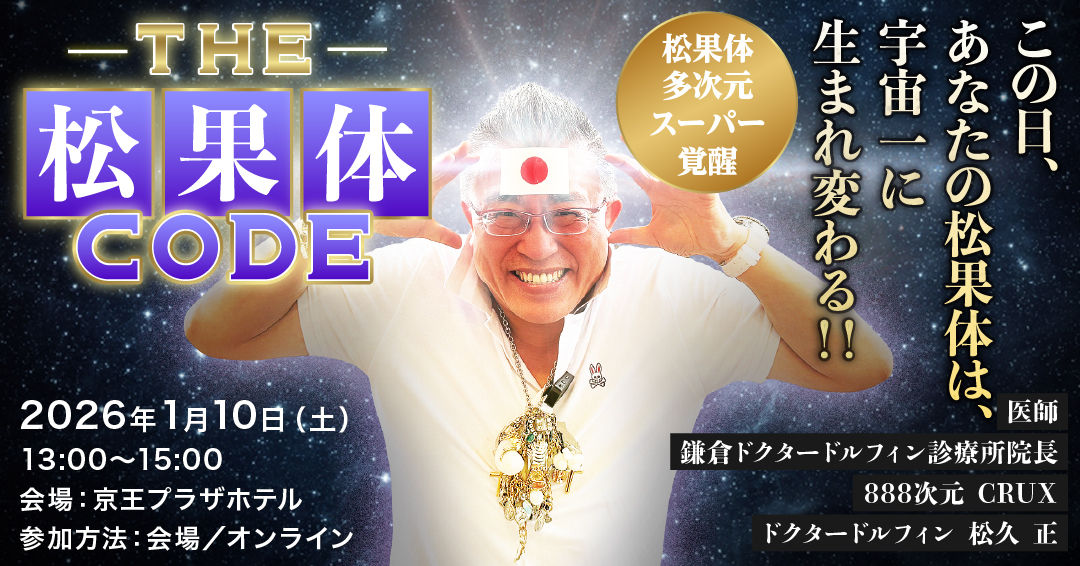 ドクタードルフィンに、この地球で会ったことのない人、それは、宇宙における大きな汚点です。大宇宙で、賞賛を受ける存在になるために、2026年、丙(火のえ)午にふさわしく「火のパワーをもつ馬のように」1月10日(土)、新宿京王プラザホテルにて開催される本講演会に参加して、ドクタードルフィンの大宇宙エネルギーを受けとり、この地球、宇宙を駆け巡りましょう!