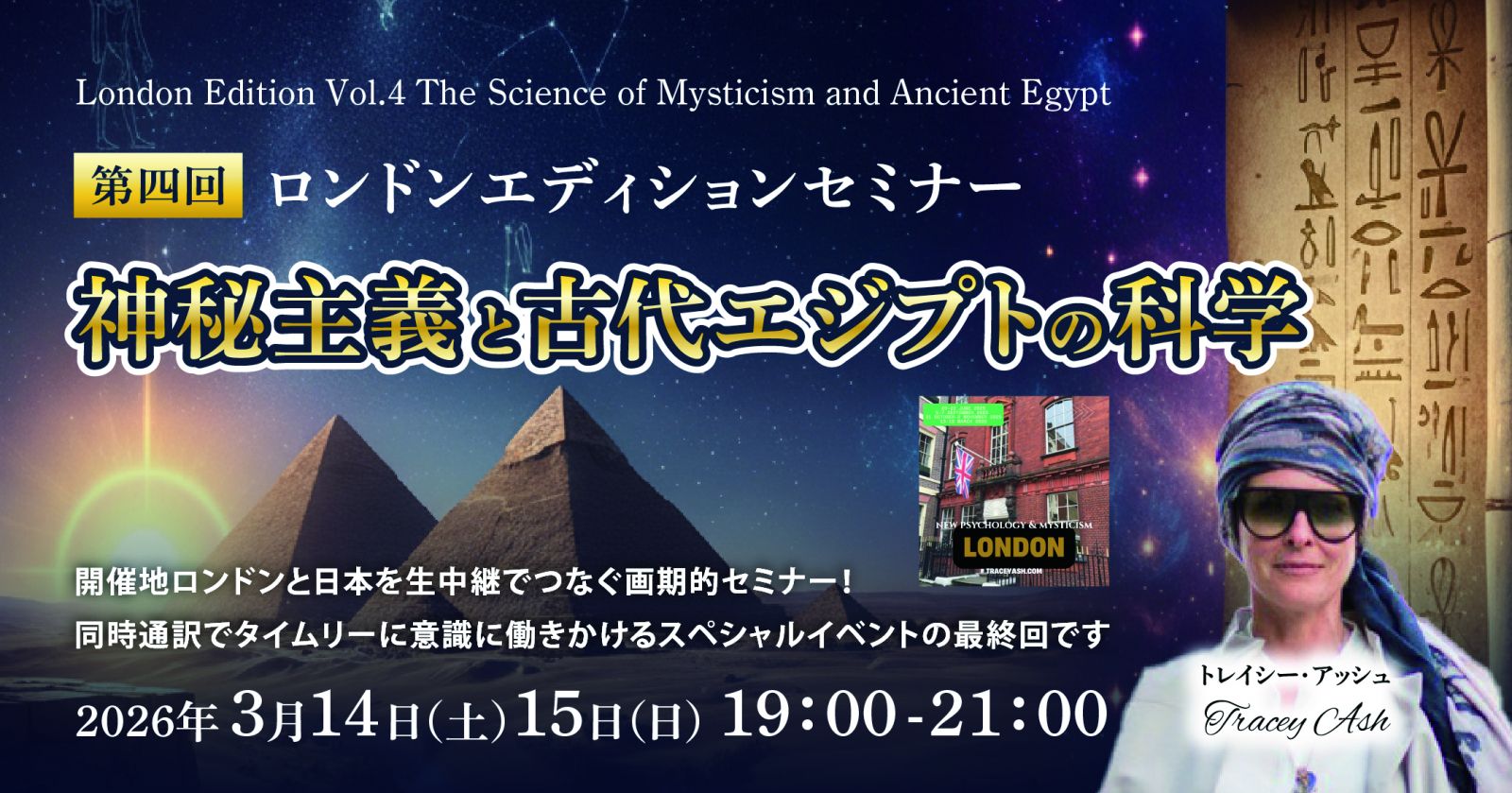 本講座は、英国ロンドンにて2025年6月21日から2026年3月15日まで全4回開催されます。世代を超えた多様な人々が集まるコミュニティは、これからの新しい人類の在り方を共に築き、つながり合うことを求められています。既存の心理学やスピリチュアルな考え方は、いまだ古い価値観に縛られており、真の自由や変革、すべてを包み込む力や深い衝撃を与える力には欠けています。そこでトレイシー・アッシュは実際に変化を起こし、トレーニングのアプローチに影響を与える画期的な特別シリーズを創り上げました。主なテーマは、エゴ、機能不全心理学、タイムライン、個人と集団のトラウマを解放し破壊するための意識、新しい心理学、神秘主義、サイオニクスについてです。