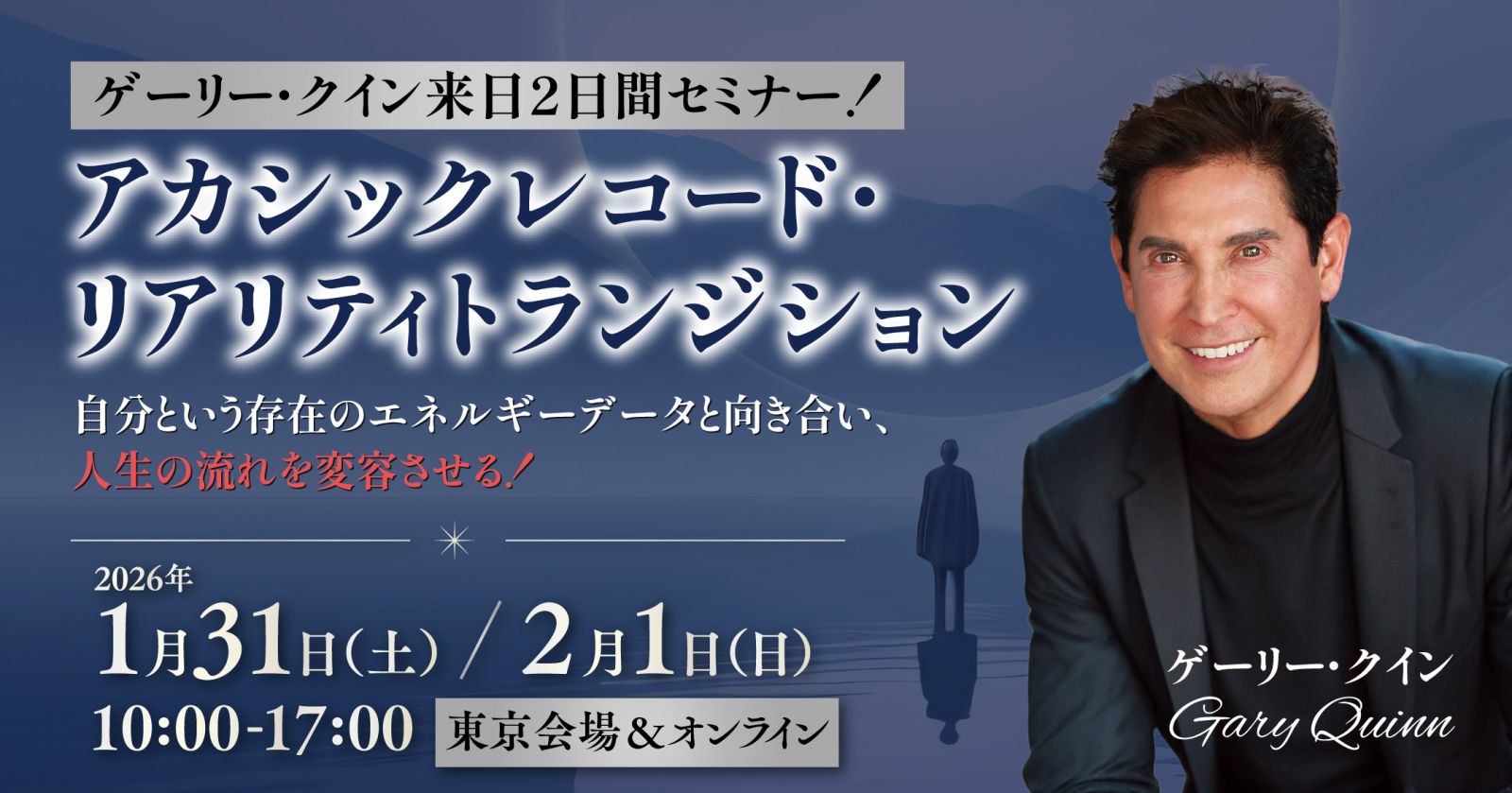 この2日間のワークショップでは、世界的に著名なサイキック兼ライフコーチであるゲーリー・クインが、参加者の皆様が内なるエネルギーの真実に同調し、古いパターンの周波数を解放し、魂の共鳴によってアカシックレコードへアクセスできるよう導くために構築された、特別なエネルギーワークをたっぷりとご提供します。また、個別のミニリーディングも予定しており、ご自分と魂レベルで向き合い、さらに学んだこと全てを日常生活に持ち帰ることができる、非常に有益なセミナー内容です。