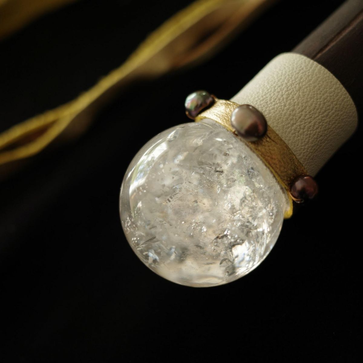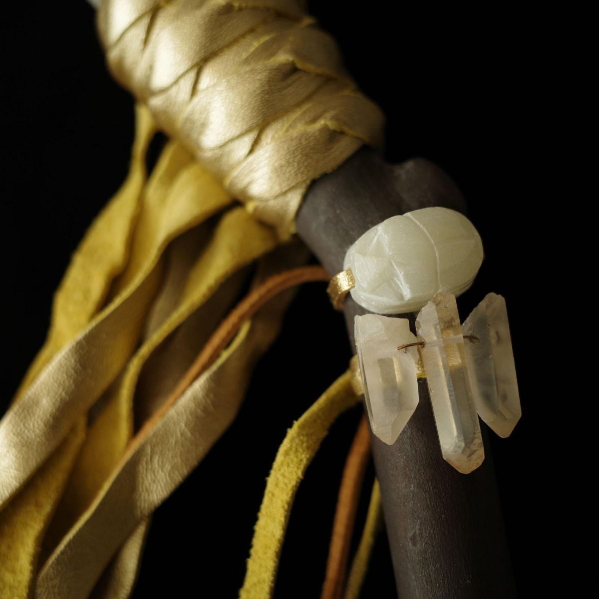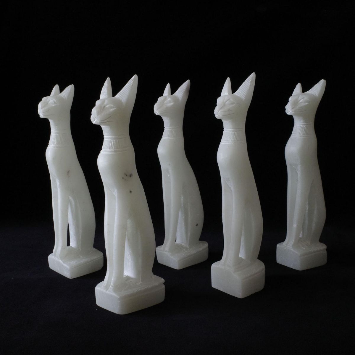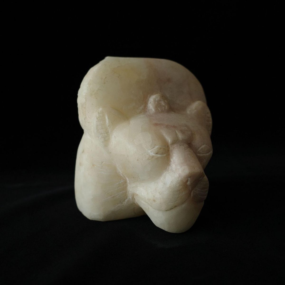 ホワイトカルサイトは、意識を浄化し、高次の導きとつながるための石ともいわれています。多くの作品には、古代エジプトで神聖視されてきた動物たちがモチーフとして彫り込まれており、見る者の魂を呼び覚ます象徴的なアートピースとなっています。